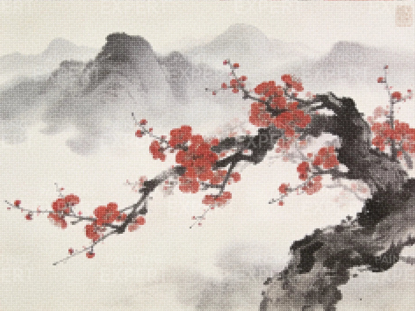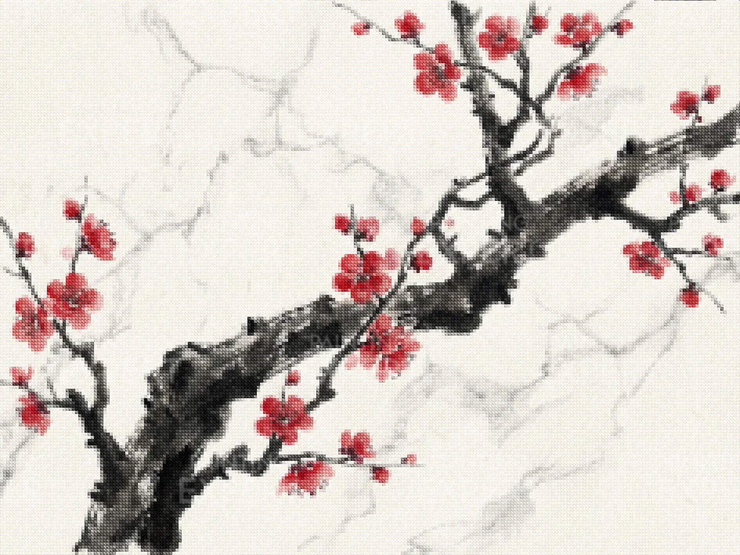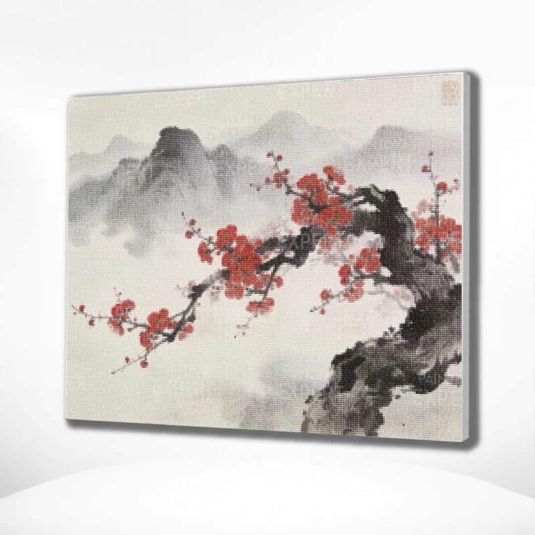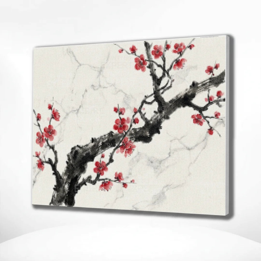 Diamond Painting Tintenzweig mit roter Blüte Japan