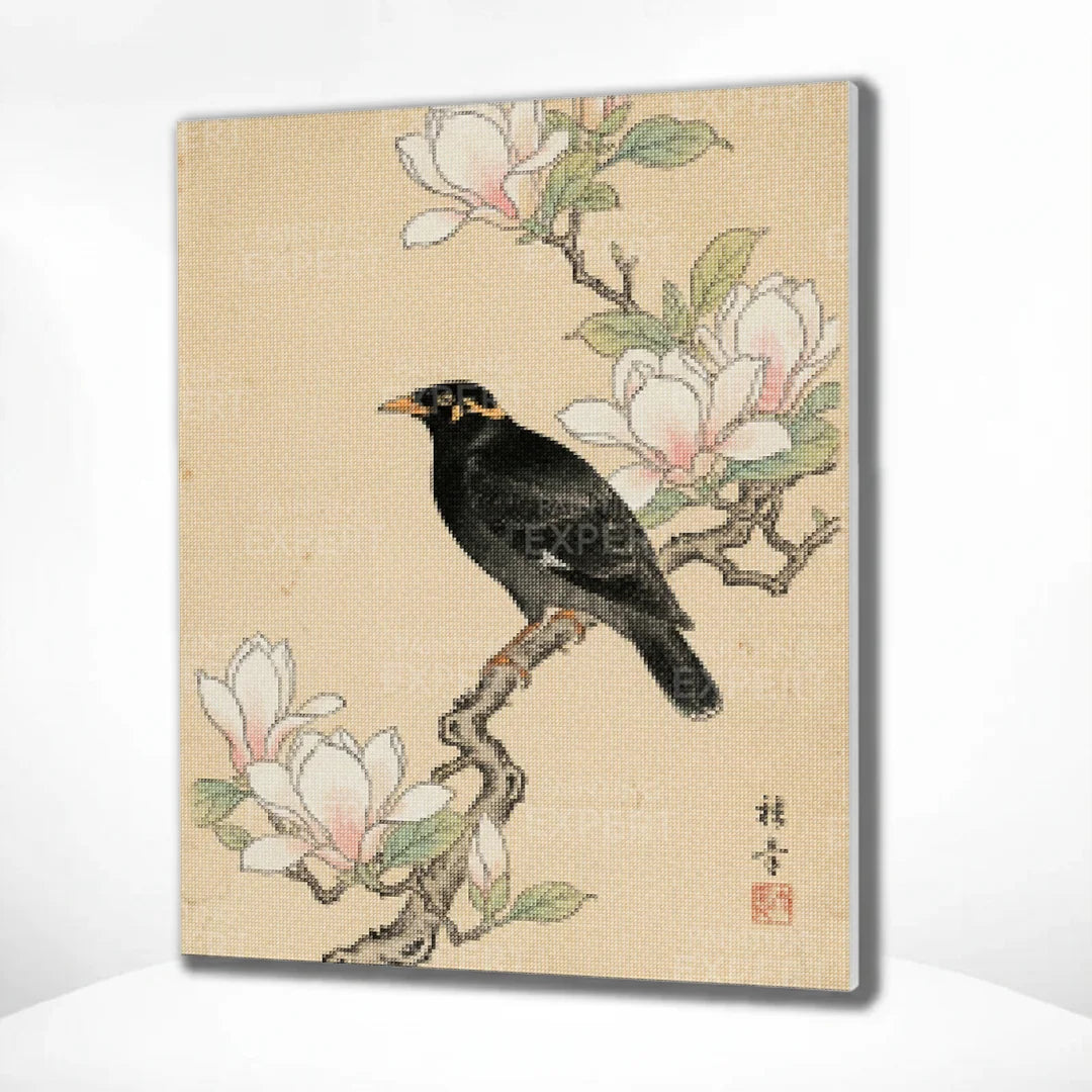 Diamond Painting Amsel bei Magnolie Japan