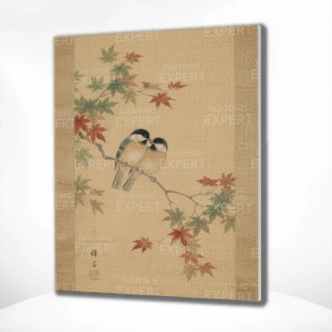 Diamond Painting Zwei Vögel zwischen Ahornblättern (Herbst) Japan