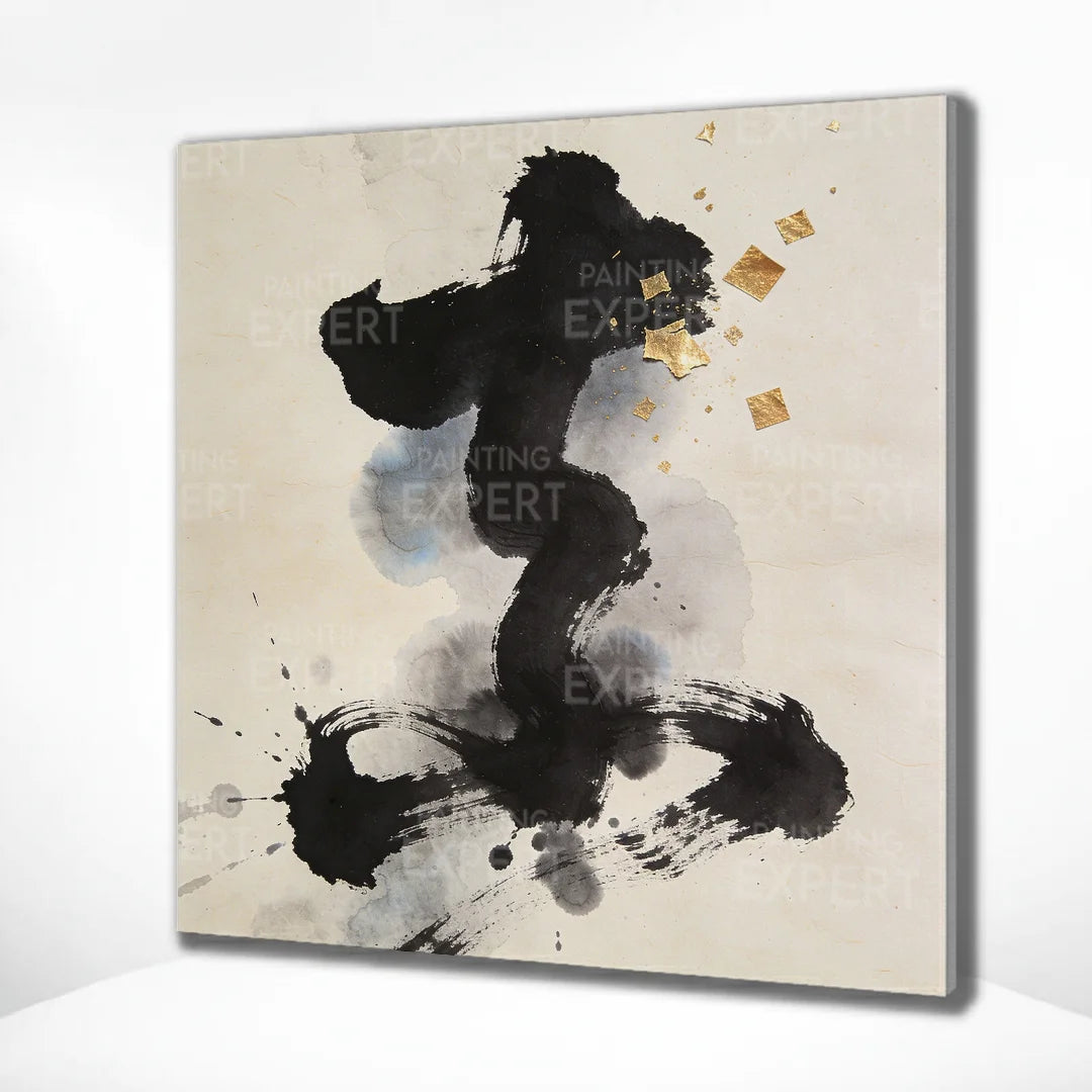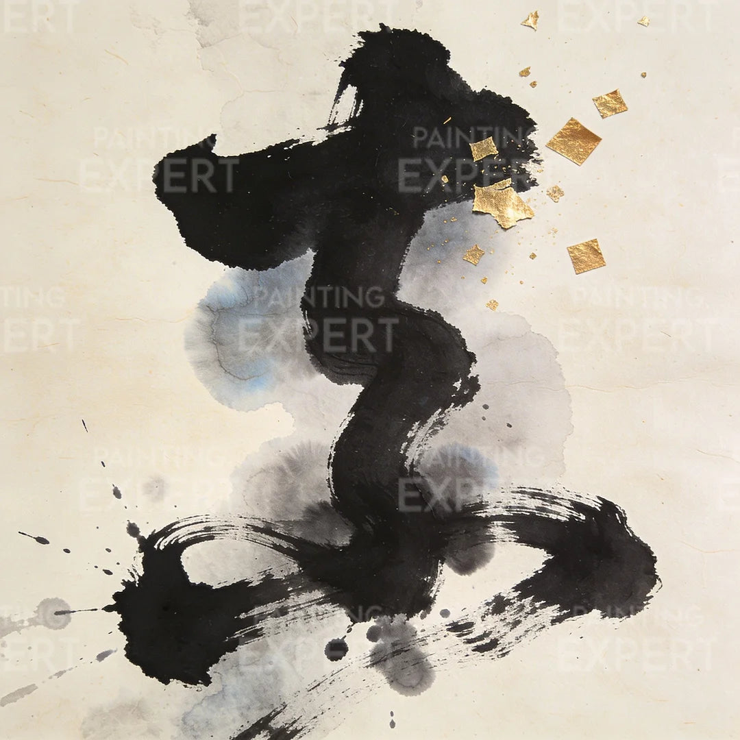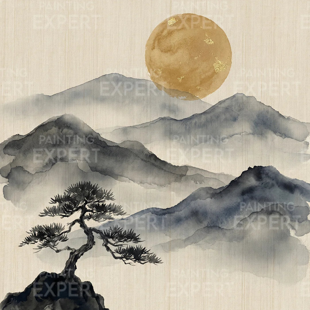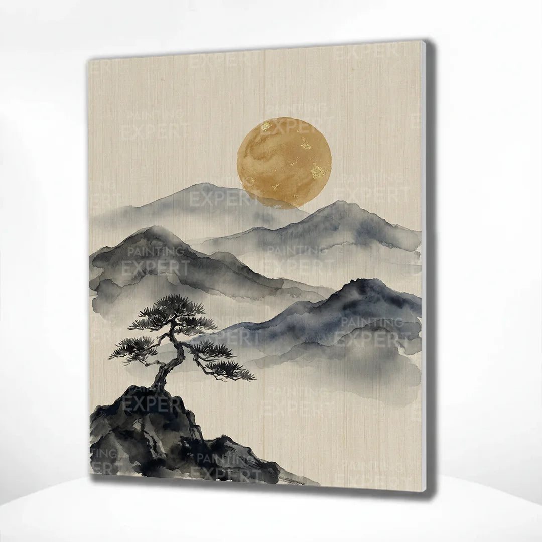 Malen nach Zahlen Berge in Tinte mit goldenem Mond Japan
