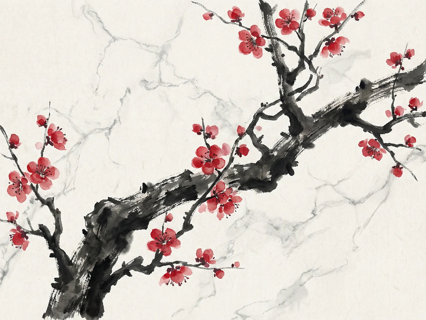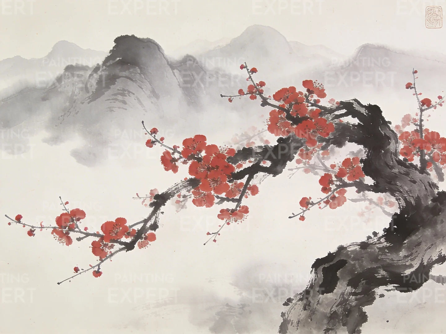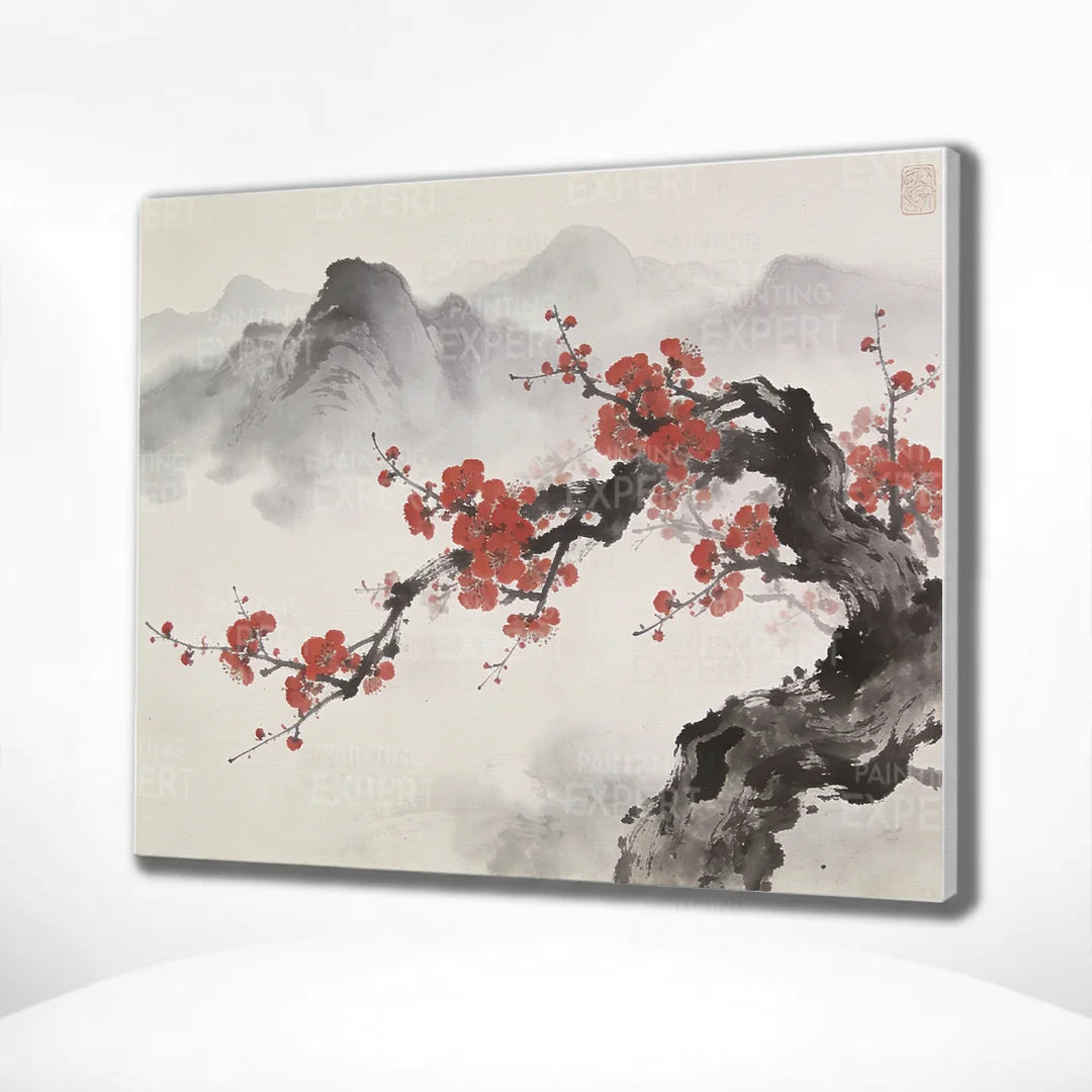 Malen nach Zahlen Tintenzweig mit roter Blüte Japan