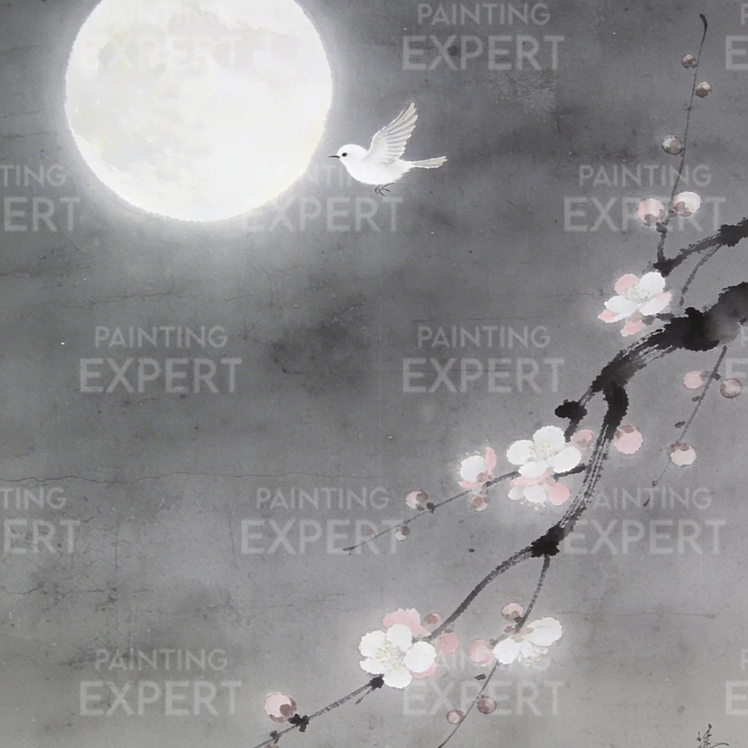 Malen nach Zahlen Twee vogels onder de maan Japan