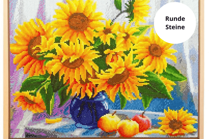 - Schneller fertig: Dank der runden Form lassen sich die Steinchen einfacher auf der Leinwand anbringen.