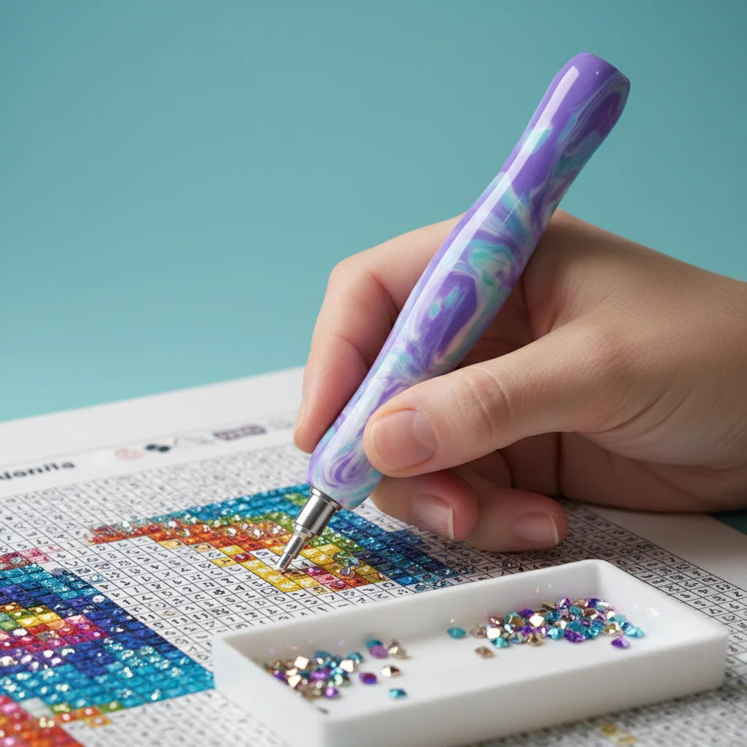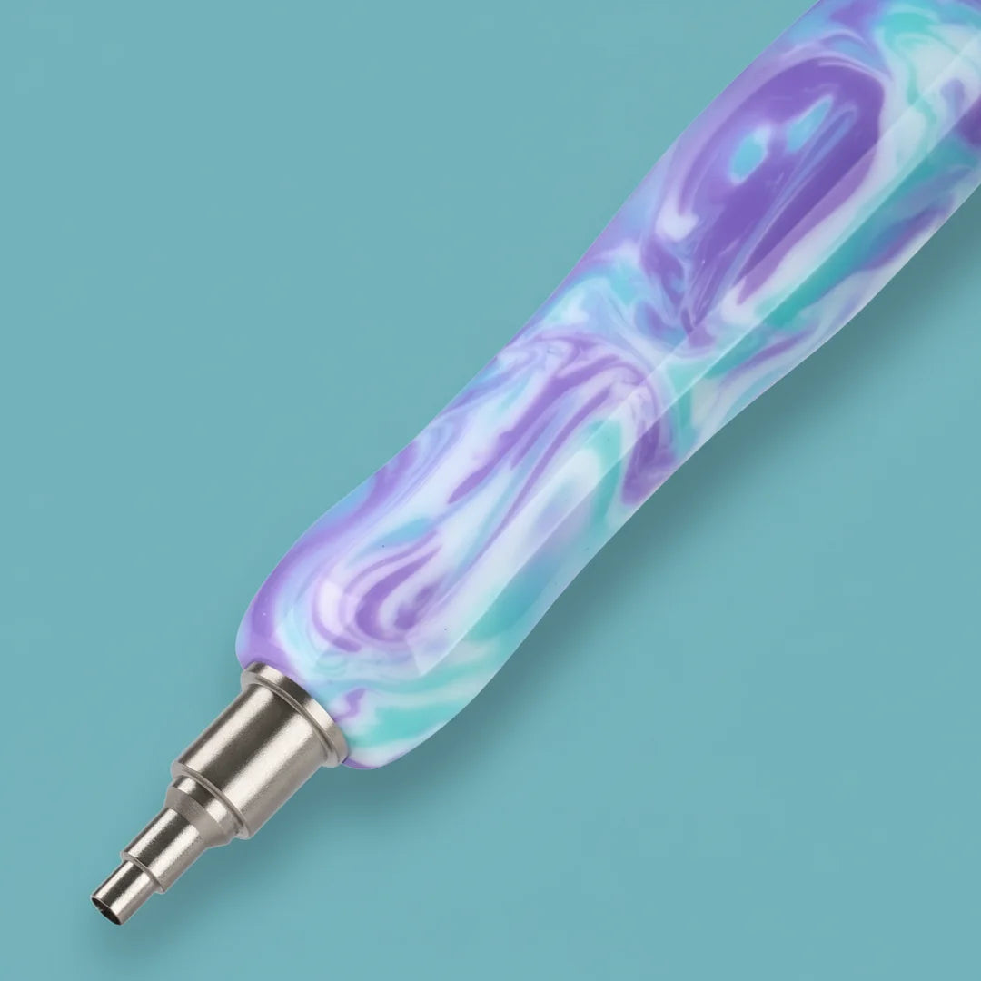 Hebe dein Diamond-Painting aufs nächste Level: Diese Variante Polarlicht-Flieder in schimmernder Lila-/Aqua-Marmoroptik verbindet Stil mit höchster Präzision. Auf einer Seite ist die Forever-Edelstahl-Single-Placer-Spitze (Gewinde) bereits vormontiert – nachfüllbar, äußerst langlebig und perfekt für sauberes, punktgenaues Setzen der Steinchen.