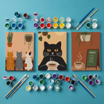 AusverkauftMalen nach Zahlen – 3 Mini-Gemälde – Gemütliches Katzencafé