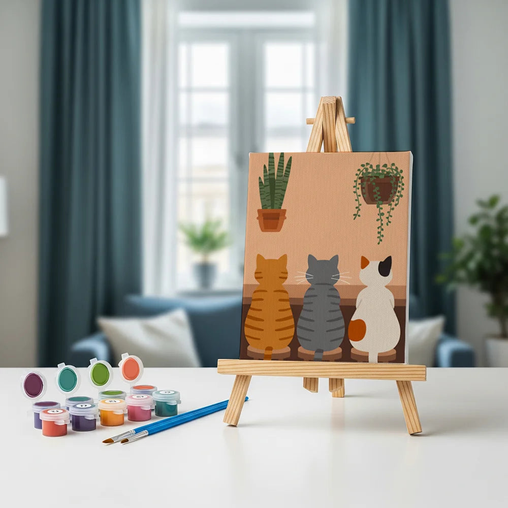 Erwecke Malen nach Zahlen – 3 Mini-Gemälde – Gemütliches Katzencafé mit diesem wunderschönen Mini-Set zum Leben. Perfekt für einen entspannten, kreativen Moment – alles ist enthalten und ideal für einen neuen kreativen Hobby-Nachmittag!