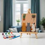 Dieses Gemütliches Katzencafé Mini-Set aus unserer Mini Malen nach Zahlen Kollektion ist ideal zum Verschenken, zum selbst Malen und anschließend zum Aufhängen an der Wand oder im Kinderzimmer. Das kompakte Format von 15 × 20 cm ermöglicht es, in 2–3 Stunden ein wunderschönes Kunstwerk zu erschaffen, ohne dass ein ganzer Abend dafür draufgeht.