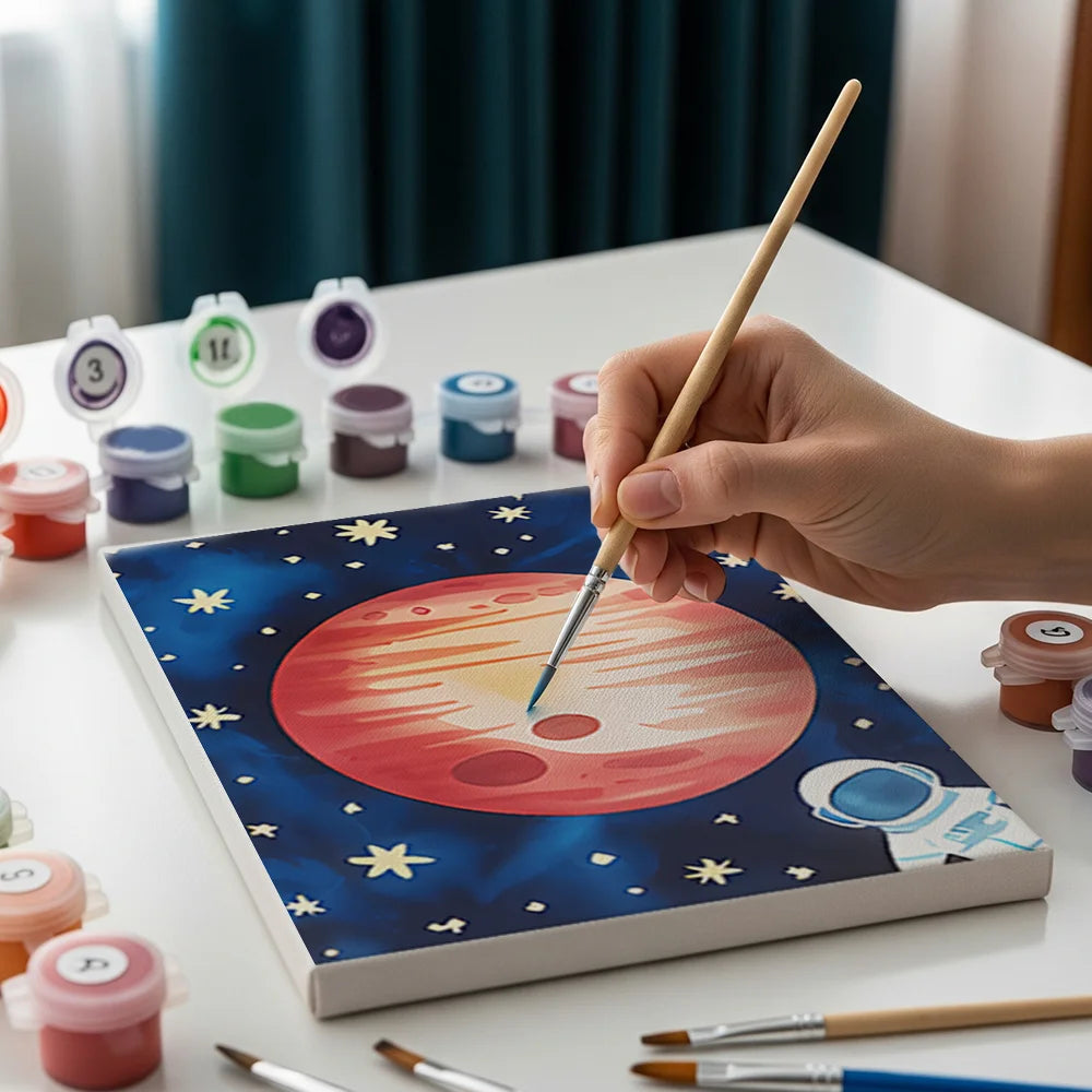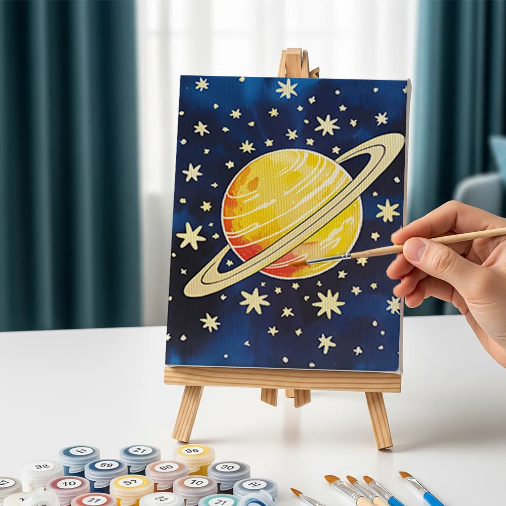 Dieses Außerhalb dieser Welt Mini-Set aus unserer Mini Malen nach Zahlen Kollektion ist ideal zum Verschenken, zum selbst Malen und anschließend zum Aufhängen an der Wand oder im Kinderzimmer. Das kompakte Format von 15 × 20 cm ermöglicht es, in 2–3 Stunden ein wunderschönes Kunstwerk zu erschaffen, ohne dass ein ganzer Abend dafür draufgeht.