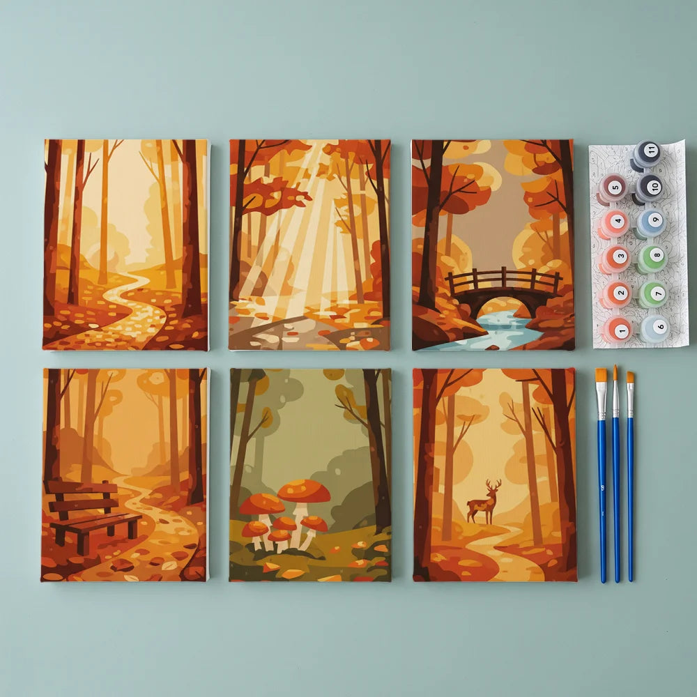 AusverkauftMalen nach Zahlen – 6 Mini-Gemälde – Bernstein-Waldweg