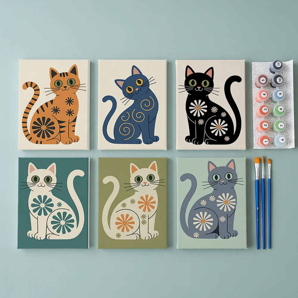 Malen nach Zahlen – 6 Mini-Gemälde - Die Mod Cats-Kollektion