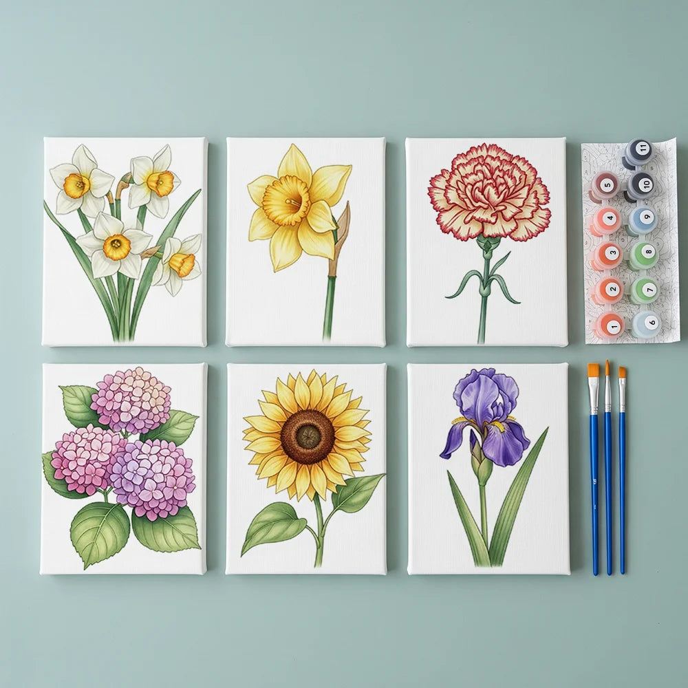Malen nach Zahlen – 6 Mini-Gemälde - Die Sprache der Blumen