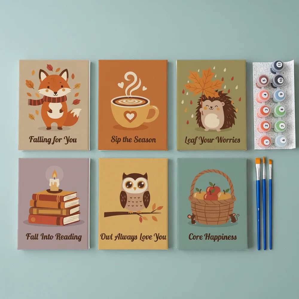 Malen nach Zahlen – 6 Mini-Gemälde - Gemütliche Herbststimmung