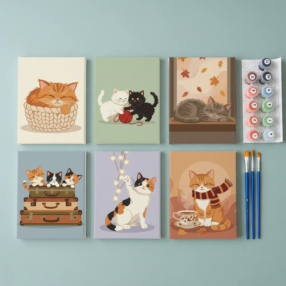 Malen nach Zahlen – 6 Mini-Gemälde - Gemütliche Kitty-Ecke