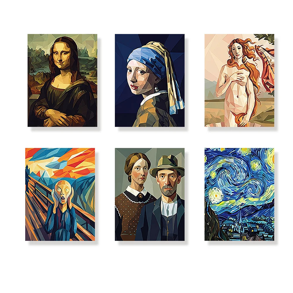 Malen nach Zahlen – 6 Mini-Gemälde - Geometrische Meisterwerke