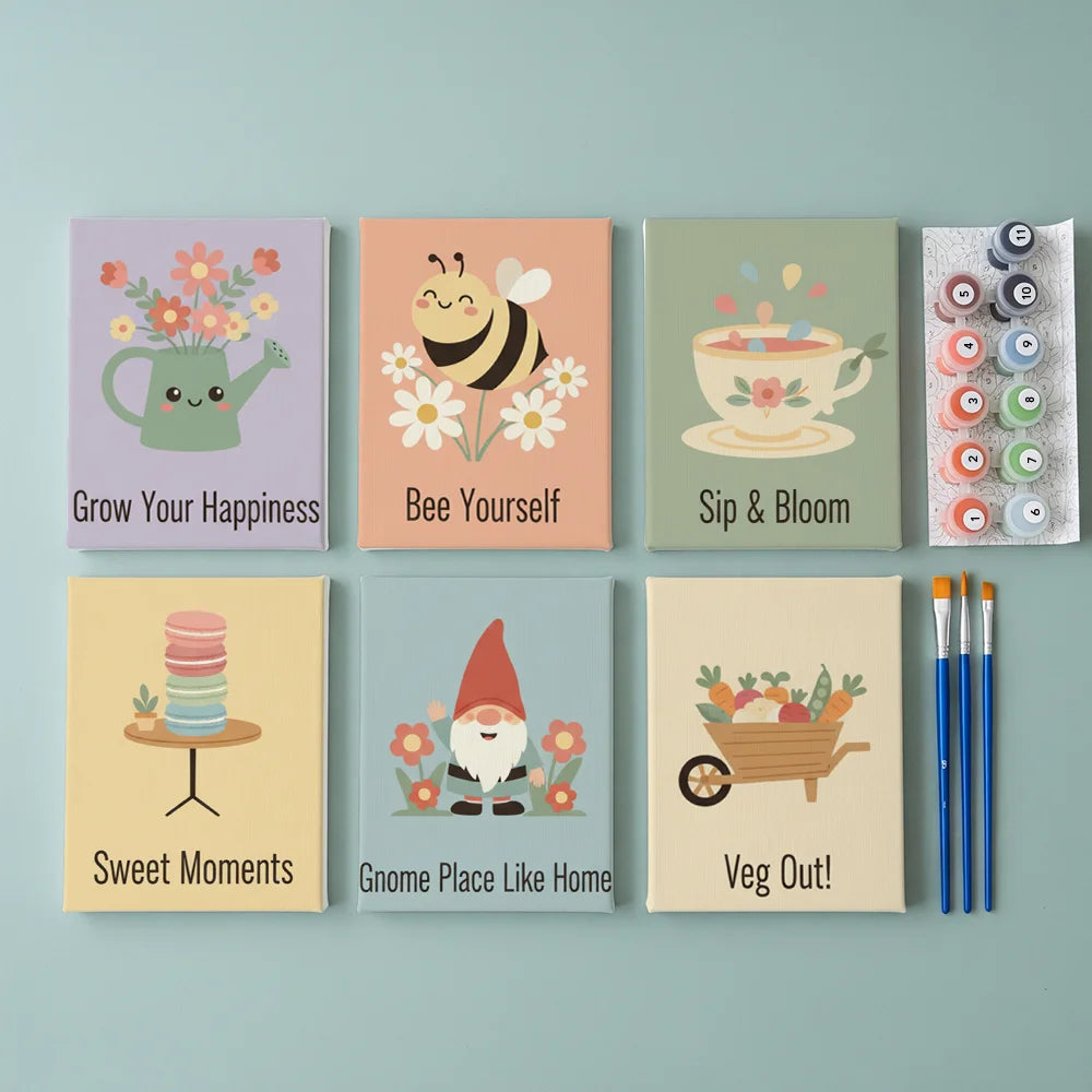 AusverkauftMalen nach Zahlen – 6 Mini-Gemälde – Launisches Gartenfest