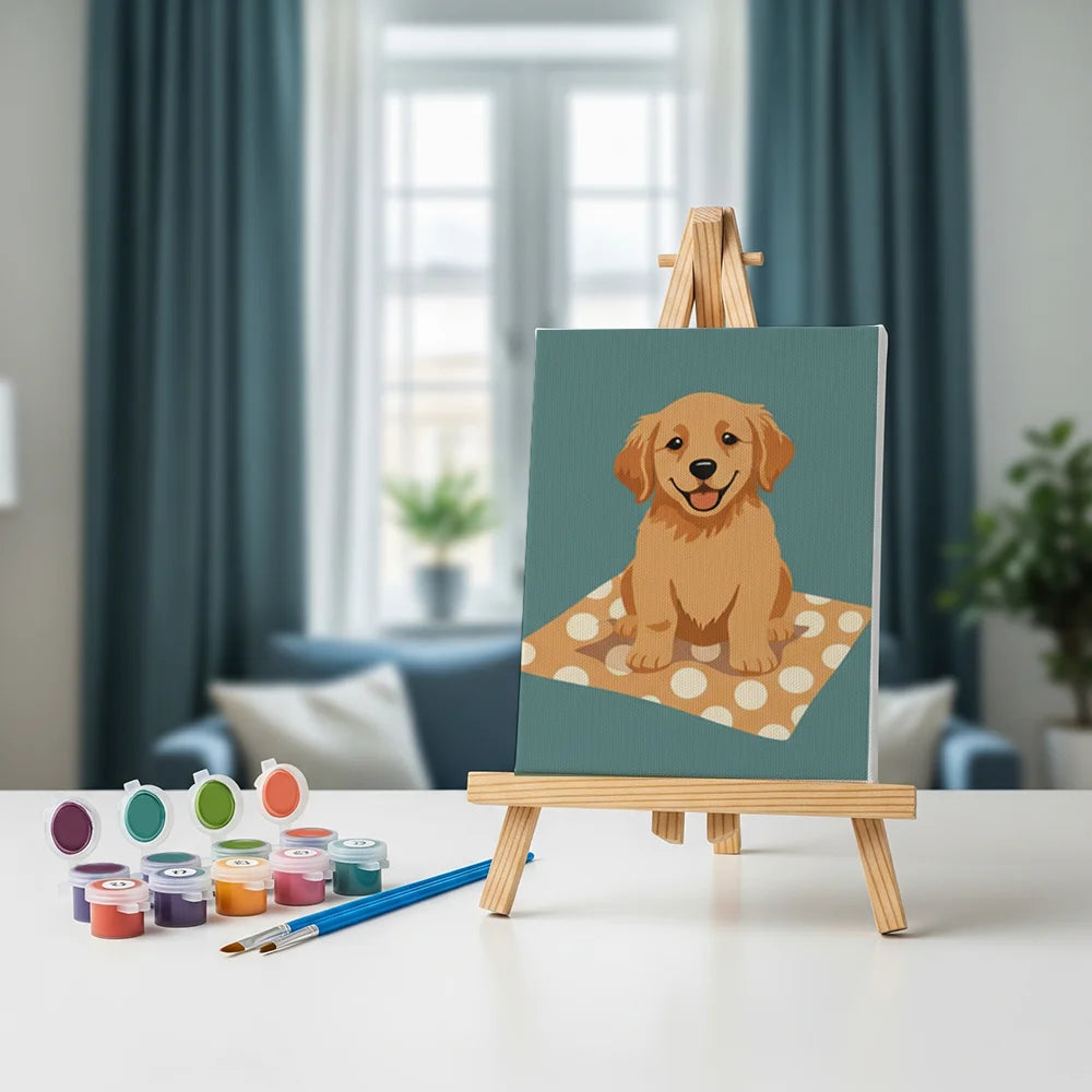 Dieses Retro Hundetage Mini-Set aus unserer Mini Malen nach Zahlen Kollektion ist ideal zum Verschenken, zum selbst Malen und anschließend zum Aufhängen an der Wand oder im Kinderzimmer. Das kompakte Format von 15 × 20 cm ermöglicht es, in 2–3 Stunden ein wunderschönes Kunstwerk zu erschaffen, ohne dass ein ganzer Abend dafür draufgeht.
