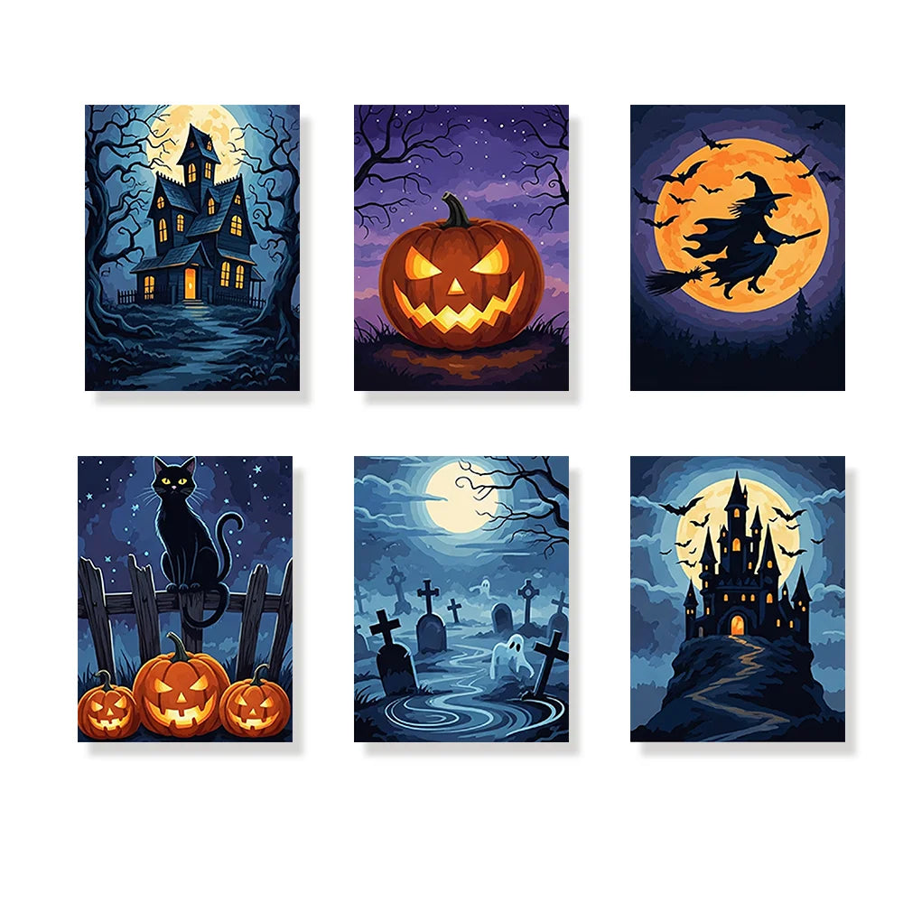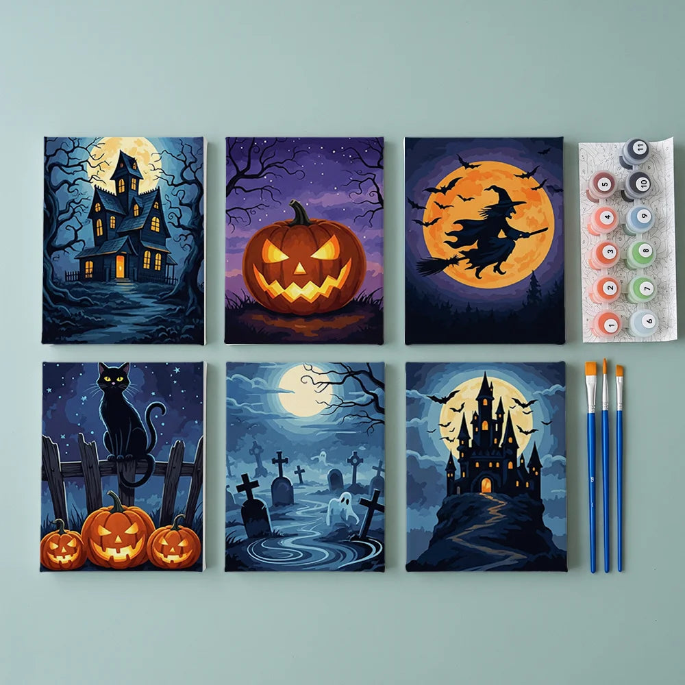 Malen nach Zahlen – 6 Mini-Gemälde - Spuknächte-Kollektion