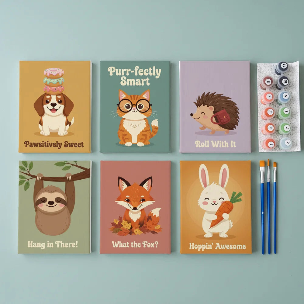 AusverkauftMalen nach Zahlen – 6 Mini-Gemälde – Tier-Wortspiel-Parade