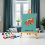 Dieses Verspielte Retro-Objekte Mini-Set aus unserer Mini Malen nach Zahlen Kollektion ist ideal zum Verschenken, zum selbst Malen und anschließend zum Aufhängen an der Wand oder im Kinderzimmer. Das kompakte Format von 15 × 20 cm ermöglicht es, in 2–3 Stunden ein wunderschönes Kunstwerk zu erschaffen, ohne dass ein ganzer Abend dafür draufgeht.