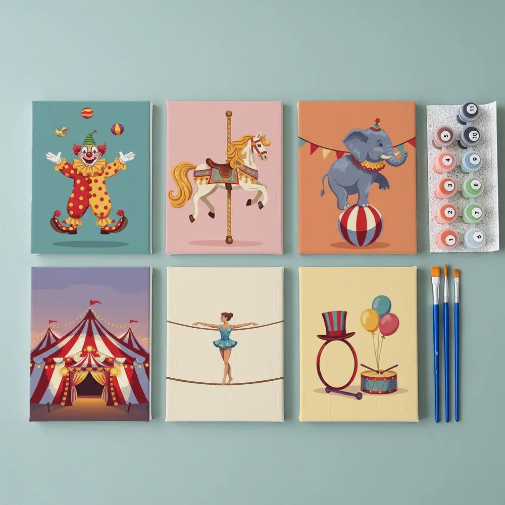 AusverkauftMalen nach Zahlen – 6 Mini-Gemälde – Zirkus-Spektakel