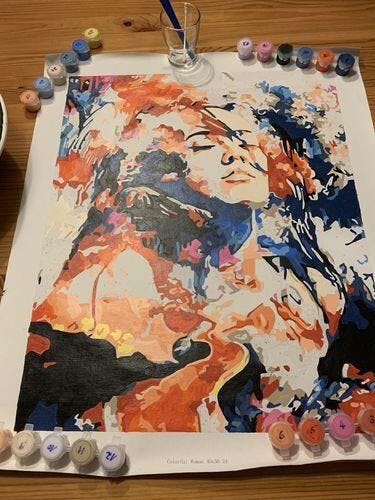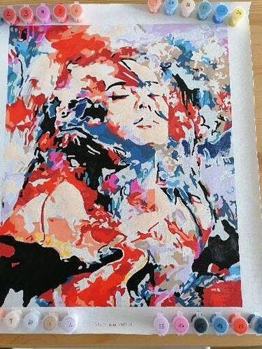 Alles in allem hochwertige Farben und Leinwand/Bild. Manche Farben sind etwas trocken und lassen sich aus dem Grund schlechter vermalen.