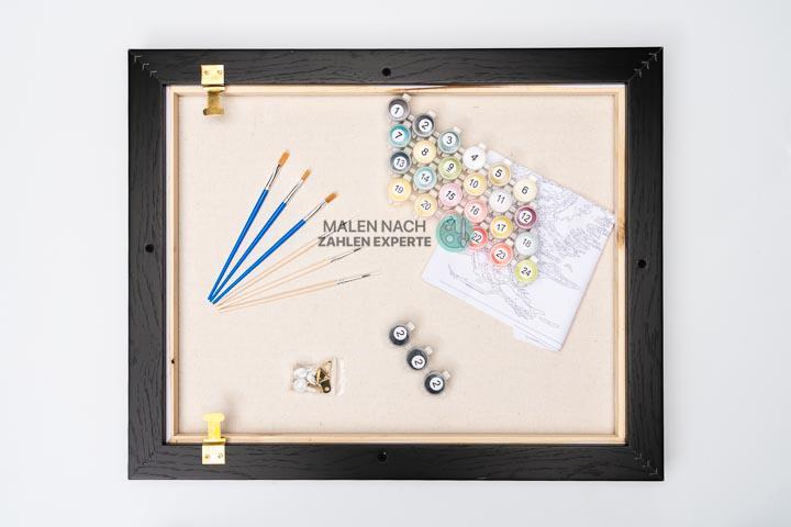 Bei Malen nach Zahlen Experte erhalten Sie ein komplettes Set mit hochwertigen Materialien, die speziell für unsere Produkte entwickelt wurden. Kein Aufwand – Sie können sofort beginnen! Das Set enthält: