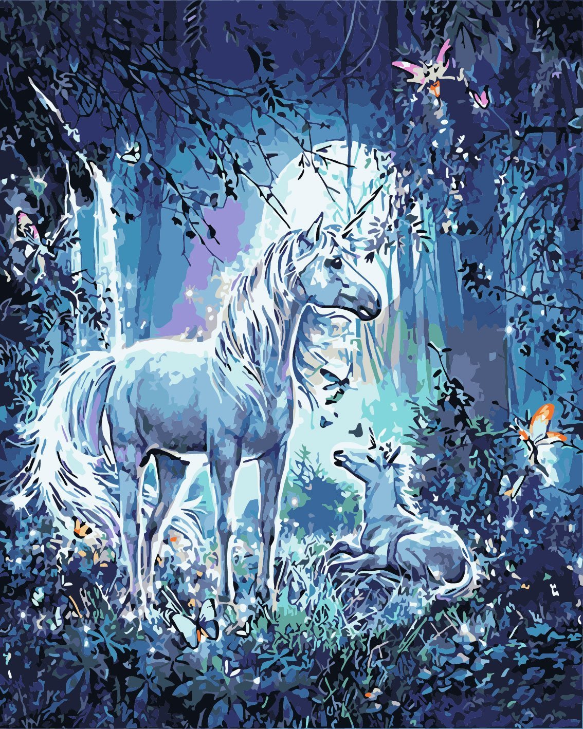 Malen nach Zahlen Einhörner im Wald