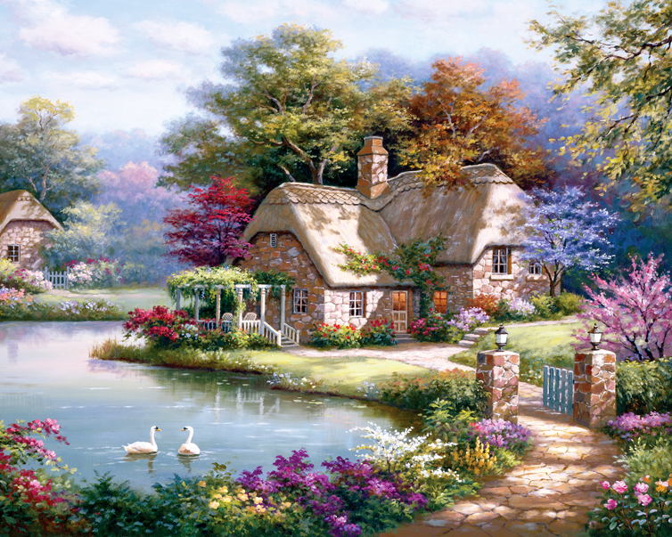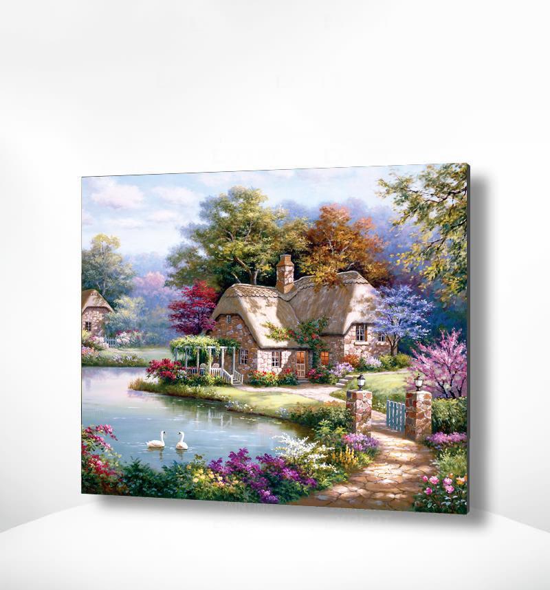 Malen nach Zahlen Haus in Holz mit Schwänen
