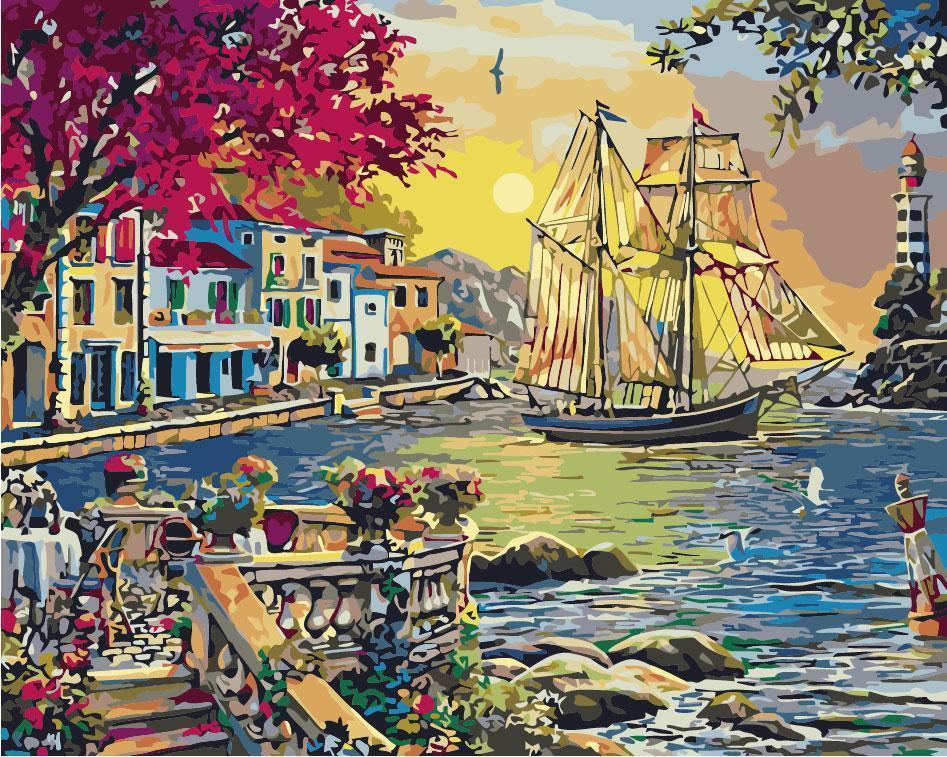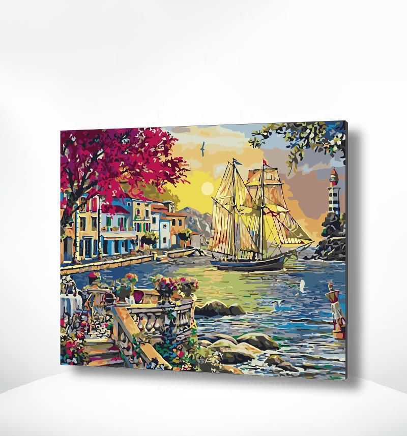 Malen nach Zahlen Schiff bei Stadt im Meer